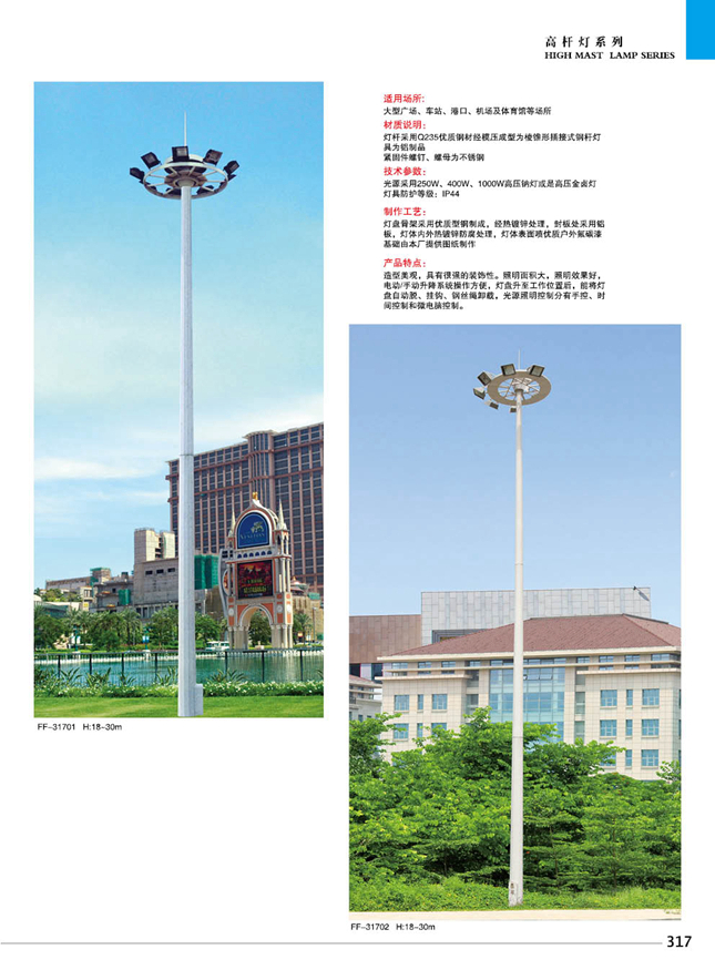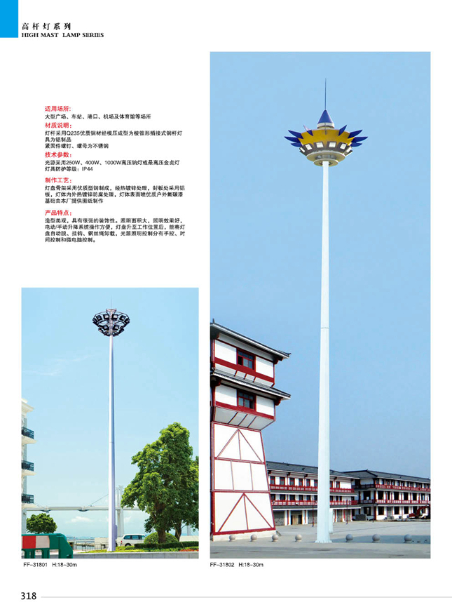 材料參數(shù):鐵制品內(nèi)外熱鍍鋅防腐處理,燈體表面噴優(yōu)質(zhì)戶外氟碳漆
