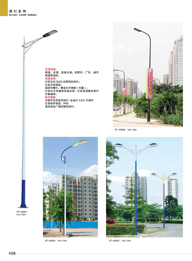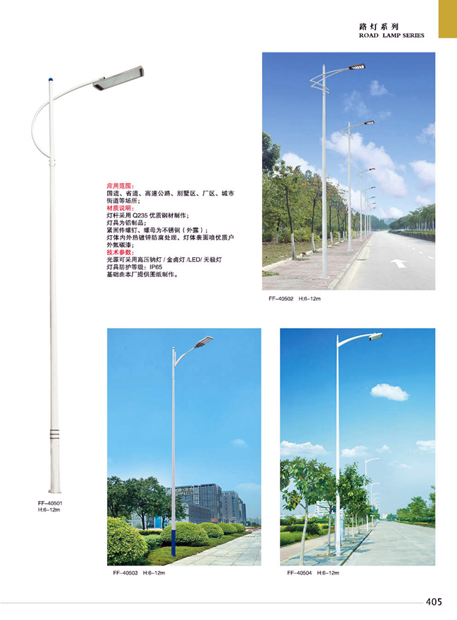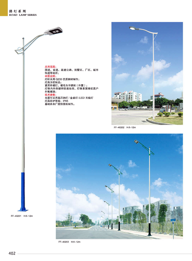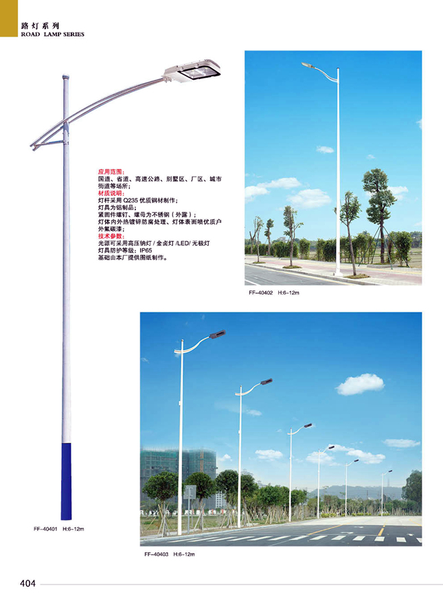 材料參數(shù):鐵制品內(nèi)外熱鍍鋅防腐處理,燈體表面噴優(yōu)質(zhì)戶外氟碳漆